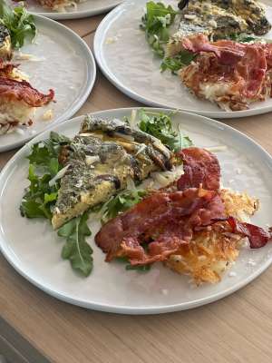Enjoy a freshly baked pastry served alongside sweet butter and fruit preserves. Eggs to order paired with a morning protein of your choice. Can’t forget the yogurt and fresh homemade sourdough.
