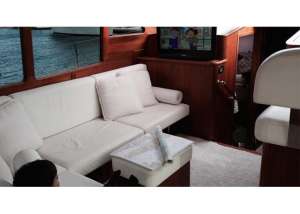 The spacious Master Suite is forward with a queen v-berth, hanging locker and private head with a separate stall shower. There is also a comfortable seat and a writing desk on the starboard side.