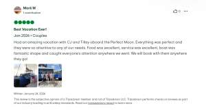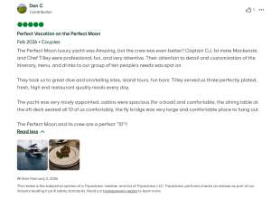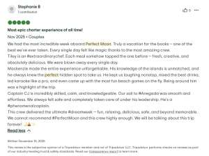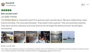 7. Any tandem charter involving multiple yachts requires the guests that paid for a specific yacht and are on that yachts manifest to be the only guests on that yacht during meal services, while underway, and overnight sleeping. This is due to safety and maritime requirements.