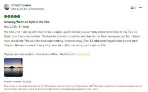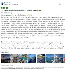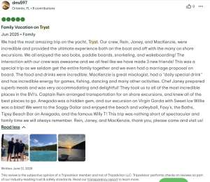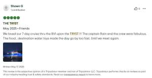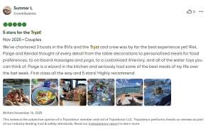From sun-drenched decks to inviting lounge areas, Tryst is designed for both social gatherings and peaceful solitude. Enjoy alfresco dining under the stars, sip handcrafted cocktails while gazing at the horizon, or unwind in a cozy nook with a book as the gentle waves lull you into serenity. Whether you’re soaking up the Caribbean sun or embarking on a thrilling water adventure, every moment aboard is designed to be memorable.