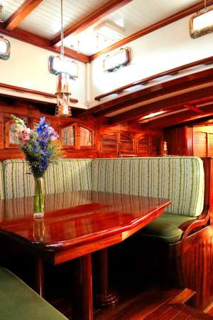 The renowned Sailing Yacht Tree of Life is now offering a remarkable opportunity to experience the breathtaking beauty and charm of Newport, RI, or Belfast, ME. Whether you're seeking a tranquil retreat in Newport's historic harbor or a captivating journey along the scenic coastline of Penobscot Bay this luxurious yacht invites you to embark on an unforgettable journey. Built in 1991, Tree of Life stands as a testament to timeless elegance on the high seas. With meticulous care and attention to detail, this stunning yacht has been lovingly maintained over the years, and constantly upgraded to meet the demands of modern oceanic exploration. Every corner of this vessel exudes a sense of refined luxury, from the premium linen bedding to the sumptuous wool blankets that envelop you in warmth and comfort. Offering the perfect blend of seafaring practicality and shoreside opulence, Tree of Life allows you to voyage with ease and grace, never compromising on comfort. In the early 1990's the Tree of Life was named one of the 100 Finest yachts in America by Sail magazine. She was designed in 1989 for a Virginia owner who planned extensive world cruising and wanted a husky yacht that resembled the Baltic trading schooners. Tree of Life was beautifully and strongly built by Covey Island Boat Works in Nova Scotia, Canada. Since launching she won schooner races in Nova Scotia and crossed the Atlantic to Ireland to win several races there too. A letter from her builder, claiming speeds in excess of 12 knots under sail, is adequate testimony to her performance while a world circumnavigation attests to her seaworthiness and ability. The Tree of Life's rig is very traditional, with its fiddled bowsprit, reefing topmasts and deadeyes. She spreads 3,894 sq ft of canvas with all sail set, giving her a sail area/displacement ratio of 24; this is more than adequate to keep her moving nicely in even the lightest of breezes. There are enough lines to handle to keep the crew busy and she is a beautiful sight surging along on a broad reach. Sailing Yacht Tree of Life is sailing out of Newport Rhode Island for the month of June. For the months of July- October Tree of Life is sailing out of Belfast Maine in Penobscot Bay.