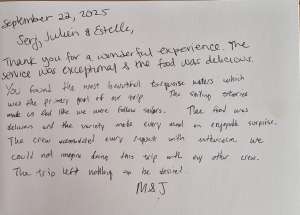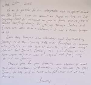 It is with great pleasure that my crew and I will accompany you throughout your cruise on "The Blue Dream".