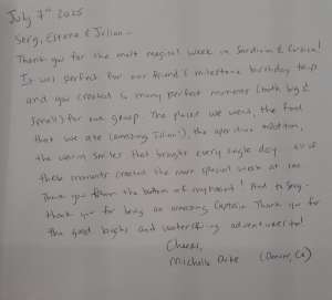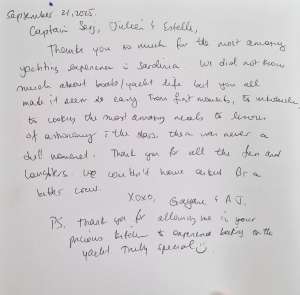 Med Term pricing is cost (cost of the boat) + VAT (country tax) + APA (operating and provisioning expenses). The cost is the weekly rate for the charter. The VAT and APA are calculated on the cost of the boat and paid in addition to that base price. The APA covers: fuel, water, food, licenses, alcohol, and any specific items you would like provided to you. APA money that is not used for provisioning would be reimbursed to you- or, if you spend over the amount, they would charge you. The Captain keeps track of expenses and would let you know if you’re reaching your APA limit. This is the industry standard for the region.