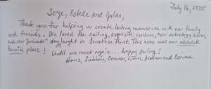 Each guest is given a foutah and a water bottle upon arrival on board.