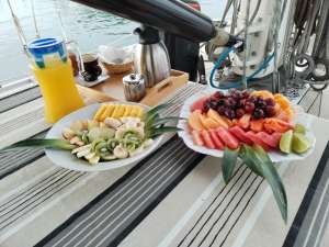 Sailing yacht OCEAN PHOENIX is ideal for friends and families alike and boasts plenty of exterior living space. The main cockpit has an alfresco dining option, with wrap around seating and Bimini cover. Aft of the cockpit is the helm station with dual helms and seating. Charter yacht OCEAN PHOENIX has a generous beam with her side decks lead to an expansive foredeck, perfect for sunning and relaxing. Her large fold-down transom ensures effortless water access for everyone. Ocean Phoenix sleeps up to 6 guests in 3 double cabins. One of the cabins offers an additional upper Pullman berth which is ideal for children. She is a modern Yacht, spacious, light and airy. All guest accommodations are forward of the salon ensuring optimum privacy. Each cabin boasts private en-suite facilities with showers. OCEAN PHOENIX offers a range of water toys and accessories for aquatic enjoyment. To highlight a few options, they provide kayaks, fishing gear, scuba diving equipment, bicycles, and paddleboards. And when it's time to transition from land to sea, their 2-meter (6'7") Tender makes it a breeze. OCEAN Phoenix has had an extensive refit in 2018, 2019 including repaint of hull and all topsides.
