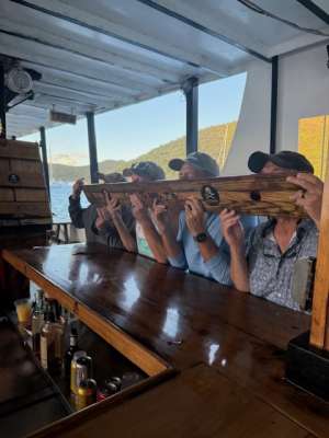 Ocean Vibes features four spacious queen cabins, each thoughtfully designed with private en-suite bathrooms, electric heads, vanities, and separate showers. Natural light fills the cabins, enhancing the serene ambiance, while a full custom air-conditioning system ensures comfort in every season. The yacht’s common areas are equally inviting, offering plenty of space to unwind, socialize, and take in the stunning ocean views.