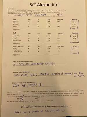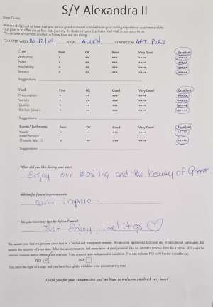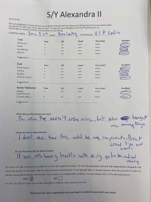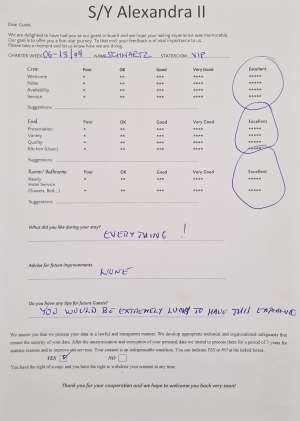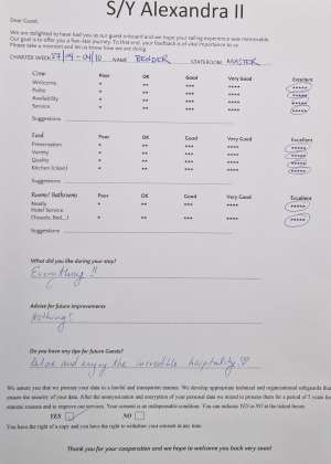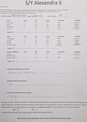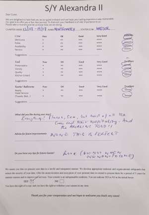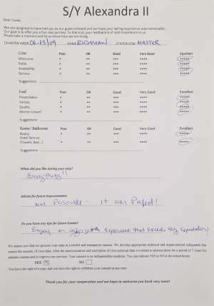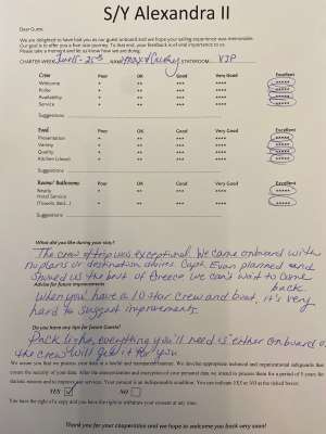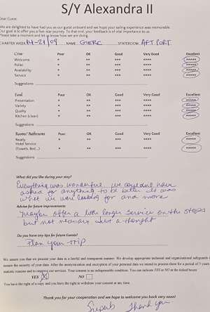 • Operating expenses including: use of air conditioning, fuel, water, sailing permits/taxes, local taxes and crew wages
