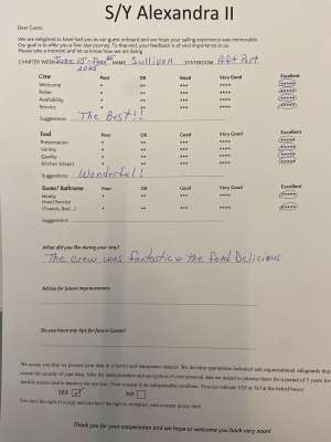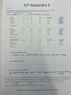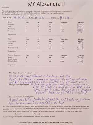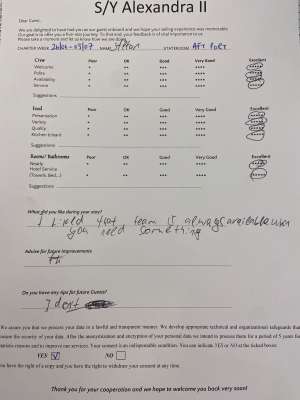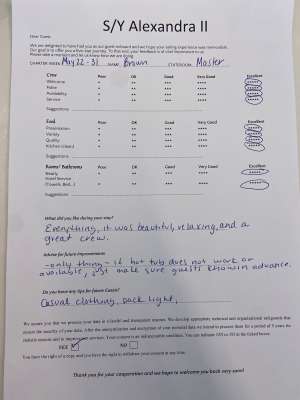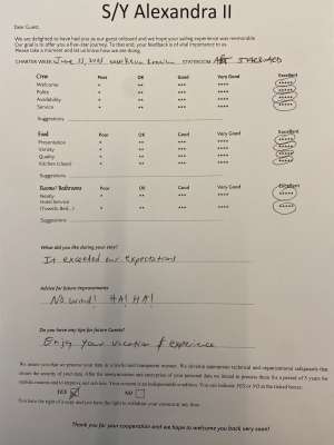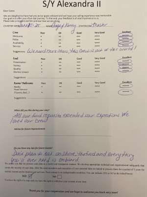 • Reputable and licensed crew who have local knowledge of waters and are able to adjust menus based on guest’s preferences and dietary restrictions