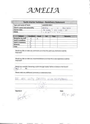 Prices Include: Yacht , her equipment and crew of 2 (captain & Hostess).