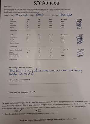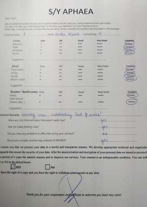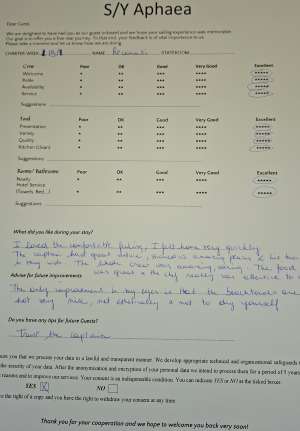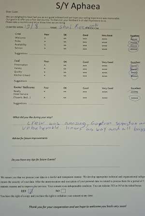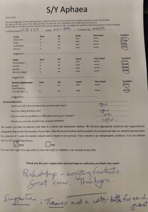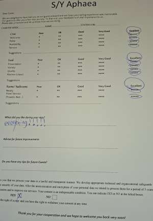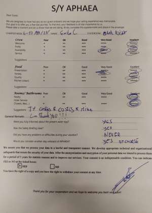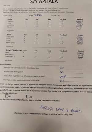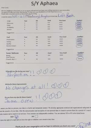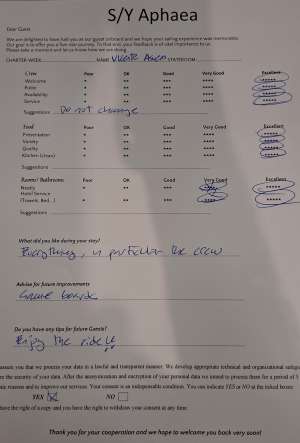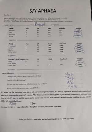 * Please note due to logistics, charters with embarkation or disembarkation in Santorini will be charged one extra day + 6,5% VAT.