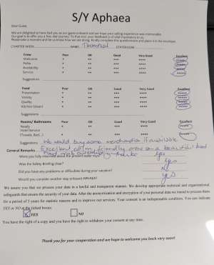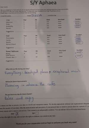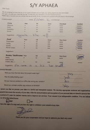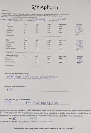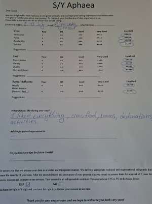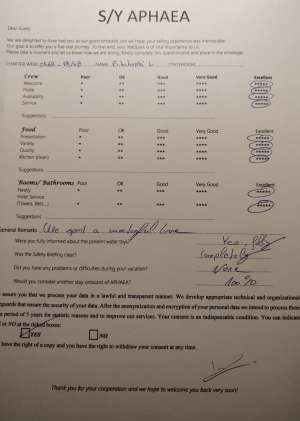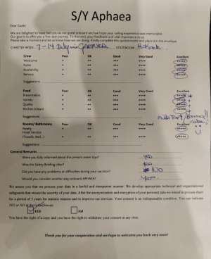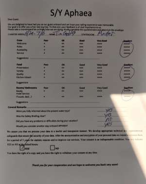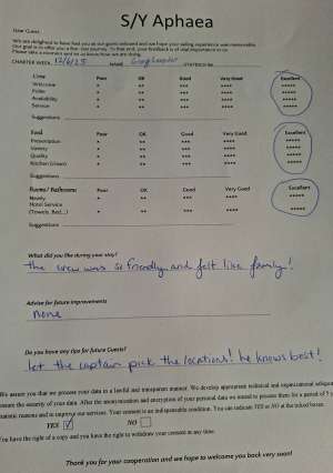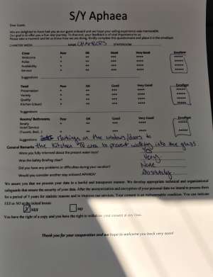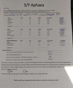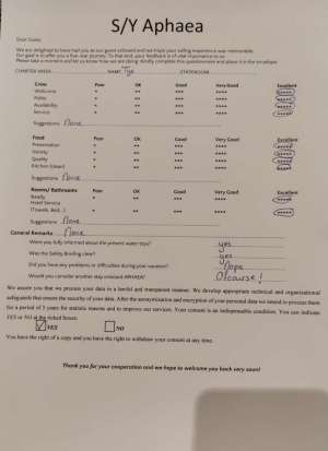 Med Term pricing is cost (cost of the boat) + VAT (country tax) + APA (operating and provisioning expenses). The cost is the weekly rate for the charter. The VAT and APA are calculated on the cost of the boat and paid in addition to that base price. The APA covers: fuel, water, food, licenses, alcohol, and any specific items you would like provided to you. APA money that is not used for provisioning would be reimbursed to you- or, if you spend over the amount, they would charge you. The Captain keeps track of expenses and would let you know if you’re reaching your APA limit. This is the industry standard for the region.