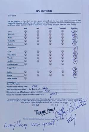 | Dinghy # pax: | - |