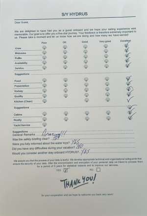 V.A.T 12% (subject to change without prior notice) & APA 25% of the charter fee not included in the rates.