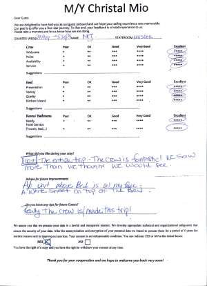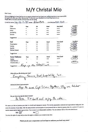 Fluent in both his native Greek and English, George's language proficiency enhances communication and ensures a smooth and enjoyable interaction with guests on board. With his warm hospitality and unwavering dedication, he is committed to making your time on Christal Mio truly exceptional.