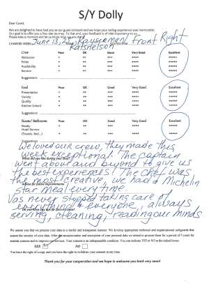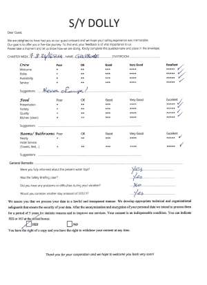 S/Y DOLLY is the ultimate example of luxury in a catamaran, with an expansive flybridge with an authentic ocean terrace and a forward cockpit with ample seating. Enjoy the thrill of sailing or simply unwind on the decadent lounges and sunbathing beds. Her interior is strikingly modern and incredibly spacious, providing the ultimate in comfort and luxury. She accommodates 10 guests in five cabins, including one owner's suite and four queen-sized cabins with private bathrooms and galley up. The flybridge and forward deck provide plenty of space for sunbathing and relaxing, while the aft cockpit is ideal for socializing and alfresco dining. Our crew, which includes a captain, deck/stew, and chef, is looking forward to spoiling guests on board and fulfilling every wish. S/Y DOLLY is dedicated to providing a relaxing and luxurious environment for all of our distinguished guests.