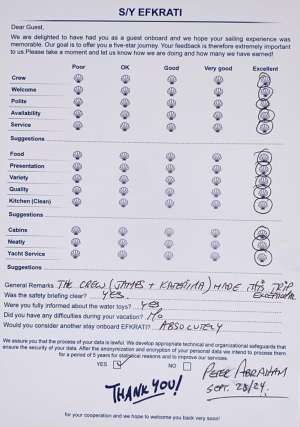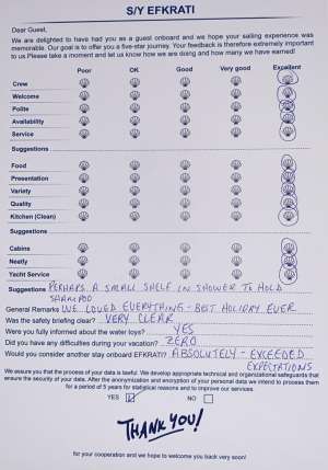 EFKRATI is a brand new Lagoon 51 catamaran, built in 2023 with high standards. She can comfortably accommodate up to 12 guests in a configuration of 6 double cabins with Queen size bed and 4 guest bathrooms. Her raised lounge of the salon provides the best 360° panoramic views of the water. She offers a wide variety of water toys for entertainment, while her professional crew of 2 will cater for all your needs.