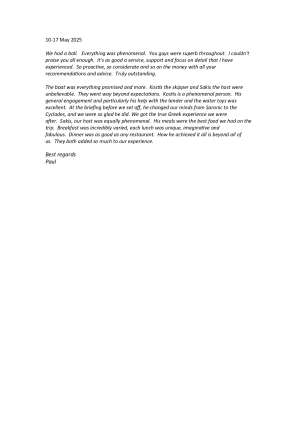 Captain Kostis, born and raised in Greece, has nurtured a profound love and respect for the sea from a young age, overcoming numerous seamanship challenges!! His passion for the sea led him to become a Captain on various yachts, exploring the crystal blue waters of Greece for many years. He is enthusiastic about all sea-related activities. Captain Kostis is highly independent and reliable, with proven leadership skills and the ability to remain calm even in tough circumstances. He has remarkable communication skills and a fun personality!! Rest assured, he will go the extra mile to accommodate any need, offering local and hidden gem suggestions for a unique and memorable experience!