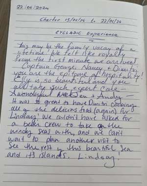 * Please note due to logistics, charters with embarkation or disembarkation in Santorini will be charged one extra day + 6,5% VAT.