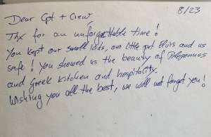 | Dinghy # pax: | - |