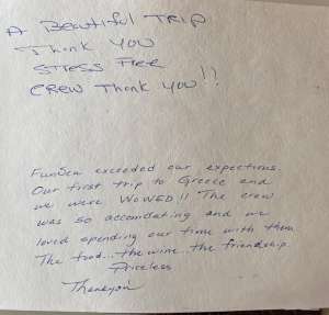 Med Term pricing is cost (cost of the boat) + VAT (country tax) + APA (operating and provisioning expenses). The cost is the weekly rate for the charter. The VAT and APA are calculated on the cost of the boat and paid in addition to that base price. The APA covers: fuel, water, food, licenses, alcohol, and any specific items you would like provided to you. APA money that is not used for provisioning would be reimbursed to you- or, if you spend over the amount, they would charge you. The Captain keeps track of expenses and would let you know if you’re reaching your APA limit. This is the industry standard for the region.