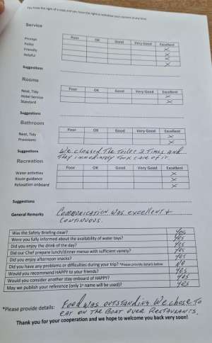 Accommodates up to 8 Guests in 1 master cabin plus 3 double cabins, all with en-suite facilities