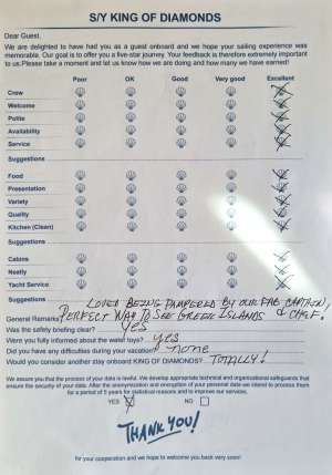 KING OF DIAMONDS is a Lagoon 560 S2 model built in 2016 and refitted in 2024! She offers five cabins exclusively for the guests and is equipped with all the amenities of a 5-star floating hotel! Huge living space, large flybridge area to relax while sailing and unique forward lounge area to chill as you explore the Greek seas.