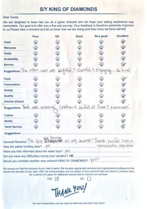 V.A.T 12% (subject to change without prior notice) & APA 25% of the charter fee not included in the rates.