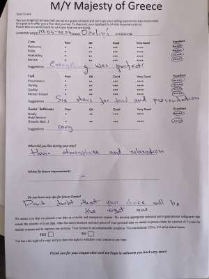 Please note due to logistics, charters with embarkation/disembarkation in Santorini will be charged one extra day + 6,5% VAT.