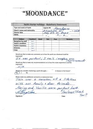 - Operating expenses including: use of air conditioning, fuel, water, sailing permits/taxes, local taxes and crew wages