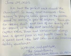 Spiros brings energy, attentiveness, and a cheerful attitude to the crew. As both deckhand and host, he’s always ready to assist—whether it’s setting up for water activities or ensuring guests are relaxed and comfortable. His dedication and service-minded spirit complete the welcoming onboard atmosphere.