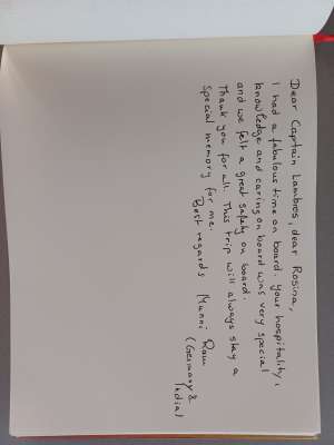 50% payment of the charter rate plus VAT plus APA to be paid 35 days prior to embarkation