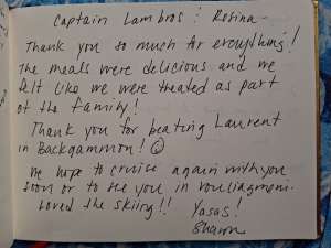8 guests in 4 cabins, Skippers and host cook in seperate compartments