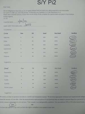 If the yacht is chartered from a location other than the home port, the charter is subject to a relocation fee.