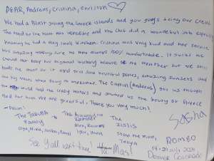 10 guests can sleep in 5 queen bed size cabins all with private bathrooms. All cabins are air-conditioned.