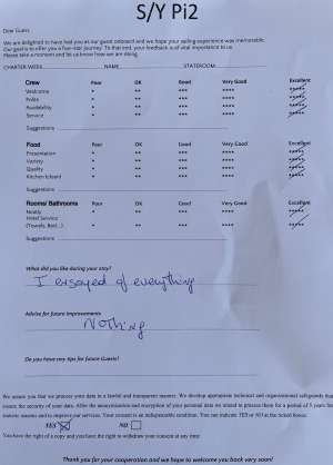 Med Term pricing is cost (cost of the boat) + VAT (country tax) + APA (operating and provisioning expenses). The cost is the weekly rate for the charter. The VAT and APA are calculated on the cost of the boat and paid in addition to that base price. The APA covers: fuel, water, food, licenses, alcohol, and any specific items you would like provided to you. APA money that is not used for provisioning would be reimbursed to you- or, if you spend over the amount, they would charge you. The Captain keeps track of expenses and would let you know if you’re reaching your APA limit. This is the industry standard for the region.
