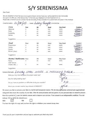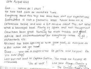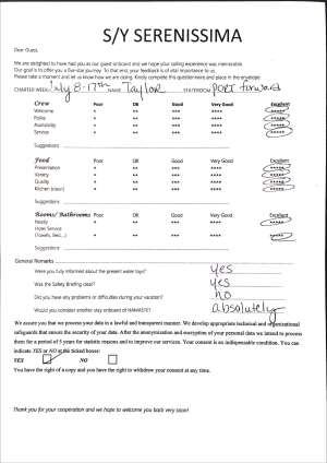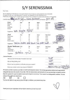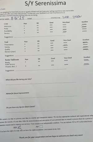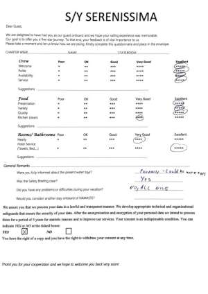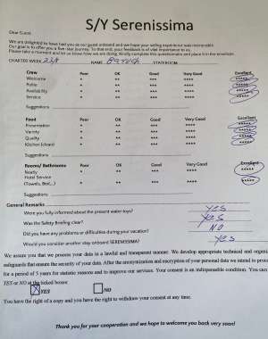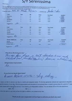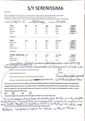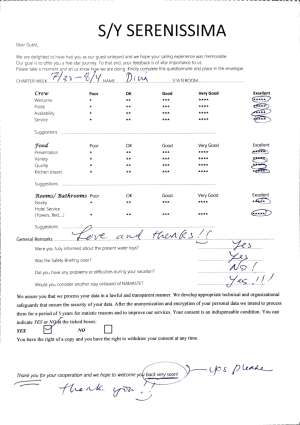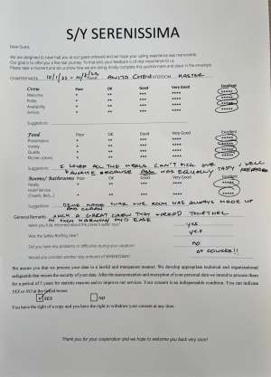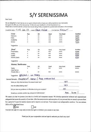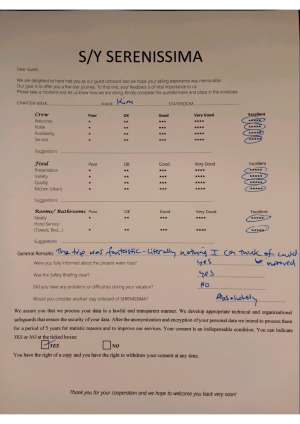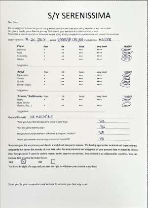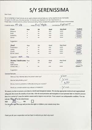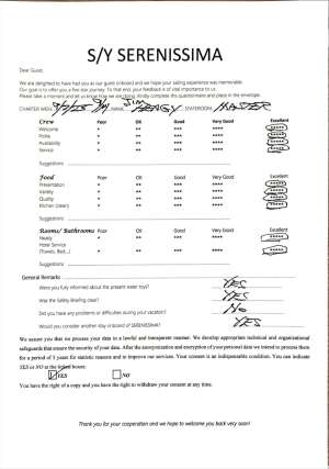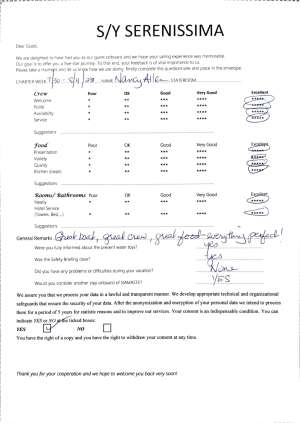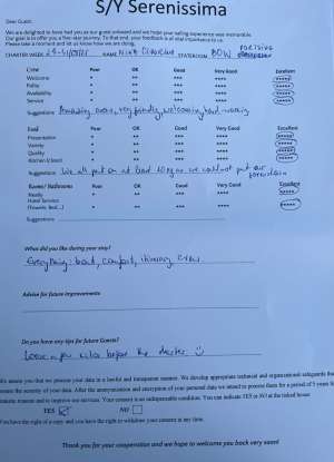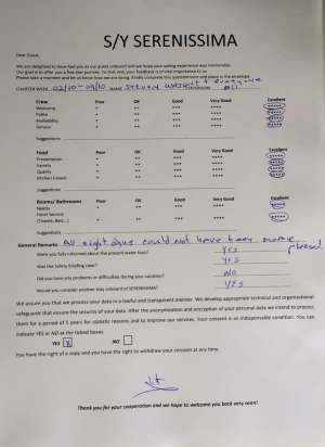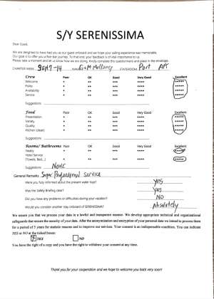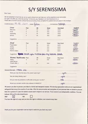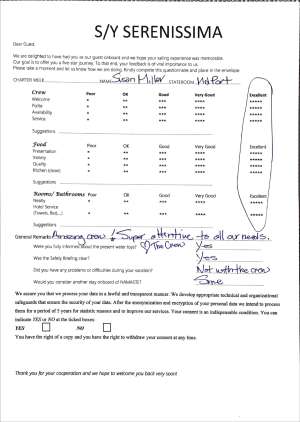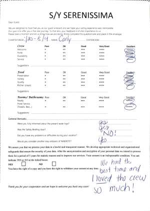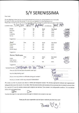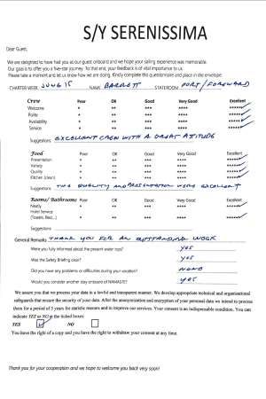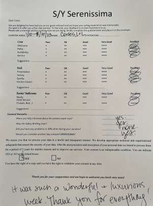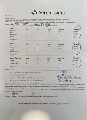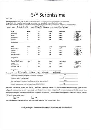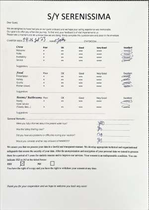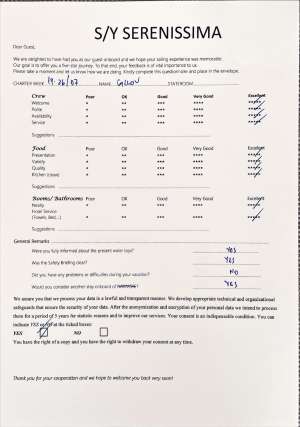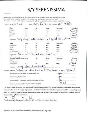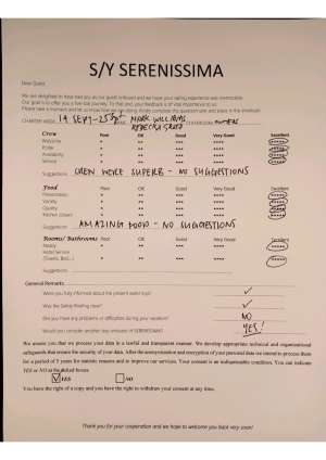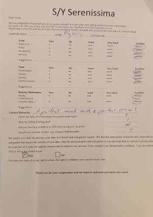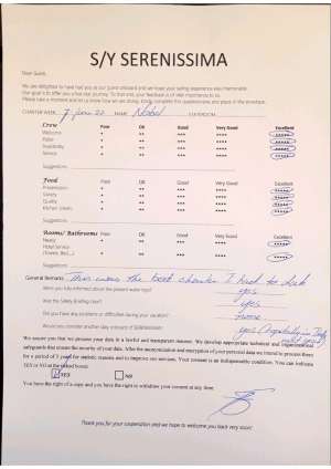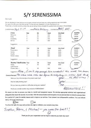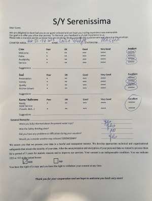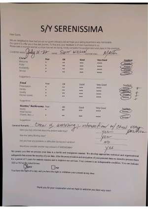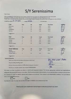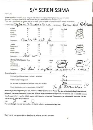 07/06/2021 - 14/06/2021 we really had a great time on the Serenissima, thanks to a very competent and friendly crew. After 2 years with Corona restrictions this was a very special trip for us and the crew as well as the boat exceeded our expectations.