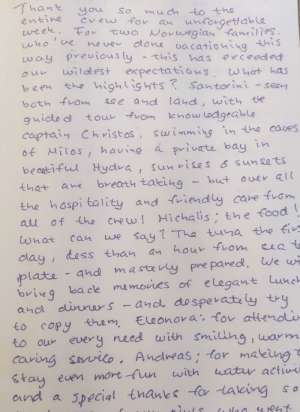 Med Term pricing is cost (cost of the boat) + VAT (country tax) + APA (operating and provisioning expenses). The cost is the weekly rate for the charter. The VAT and APA are calculated on the cost of the boat and paid in addition to that base price. The APA covers: fuel, water, food, licenses, alcohol, and any specific items you would like provided to you. APA money that is not used for provisioning would be reimbursed to you- or, if you spend over the amount, they would charge you. The Captain keeps track of expenses and would let you know if you’re reaching your APA limit. This is the industry standard for the region.