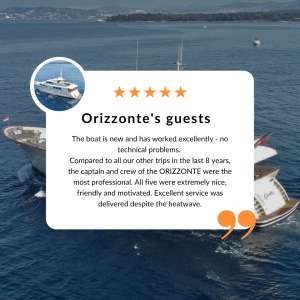 Introducing Orizzonte, the extraordinary 30-meter custom Dutch-built yacht crafted by Vahali in 2020. Elegance flows through each detail of the yacht, gently bouncing off the waves to sweep you away on an enchanting journey from the picturesque southern French archipelago to the charming foothills of Italy. From the outset, Orizzonte captivates with her classic design that appeals to those seeking a perfect blend of comfort and sophistication. Ideal for families or friends, every voyage promises a beautiful experience, whether you're sunbathing on the expansive bow, sharing laughter on the spacious flybridge, or relishing intimate dinners under the stars at a secluded table on the stern. Venture into the crisp waters from the swim platform for a refreshing escape, or continue the excitement with a plethora of water toys, including a jet ski, seabob, water skis, and snorkeling gear, ensuring your days are filled with exhilarating moments. As an extra touch of maritime indulgence, Orizzonte offers the unique experience of having her own fishing gear onboard. Delight in the thrill of catching your own dinner in the azure waters, and let the skilled chef transform your freshly caught fish into a culinary masterpiece, elevating your journey with a truly personalized and delectable dining experience at sea. As the sun sets, step inside to discover a world of sophisticated elegance. The interior seamlessly combines varied textiles, rich dark woods, and a light-hued ceiling, creating an inviting and exclusive atmosphere. The lounge, with the spacious dining setup and cozy sofa cluster facing a TV, is the perfect retreat for unwinding. Each cabin, accommodating 8 guests across 1 master, 2 VIPs, and 1 double cabin, exudes warmth, luxury, and ample space. The bathrooms, adorned with stone tiles, glass shower doors, and subtle silver details, breathe timeless sophistication. Embark on sun-drenched days exploring enchanting destinations along the southern coasts of France and Italy, guided by Orizzonte. Let her be the vessel that crafts memories of a lifetime for your unforgettable adventure.